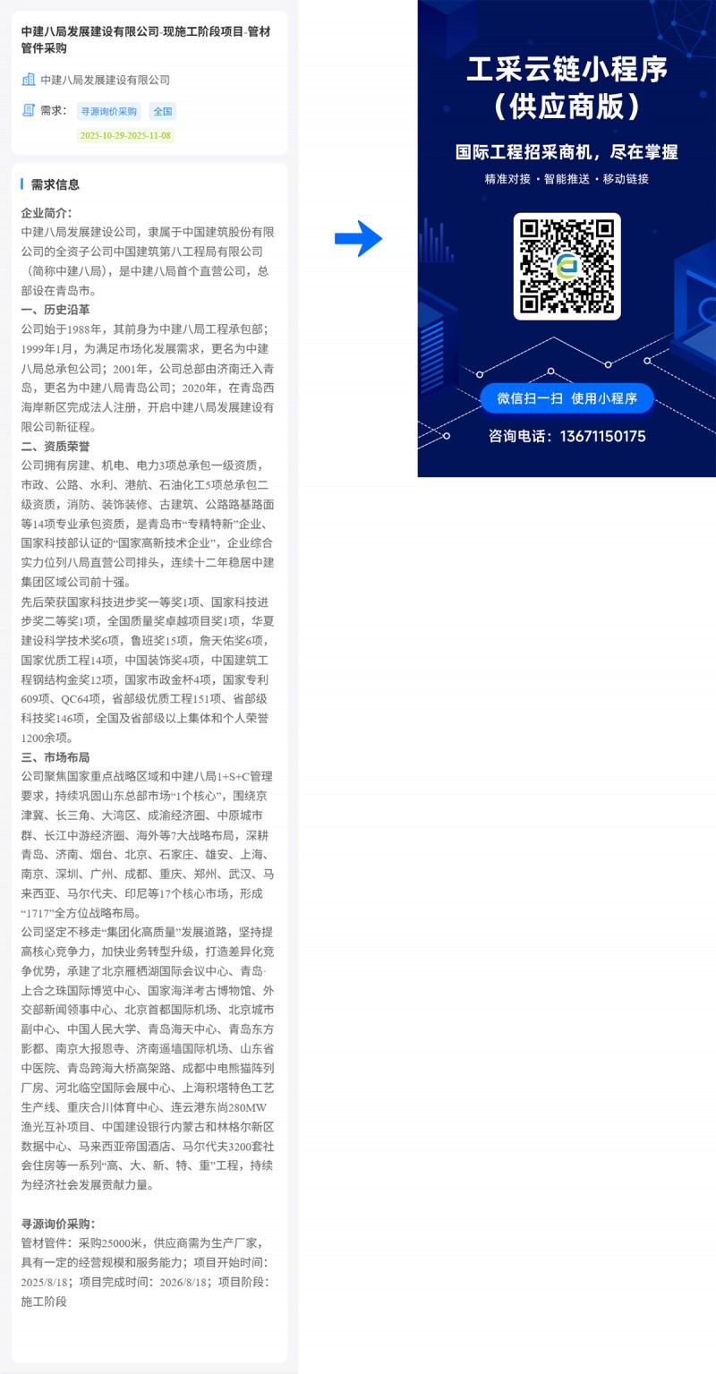 中建八局第一建设有限公司-印尼某项目-管材管件供应商寻源储备